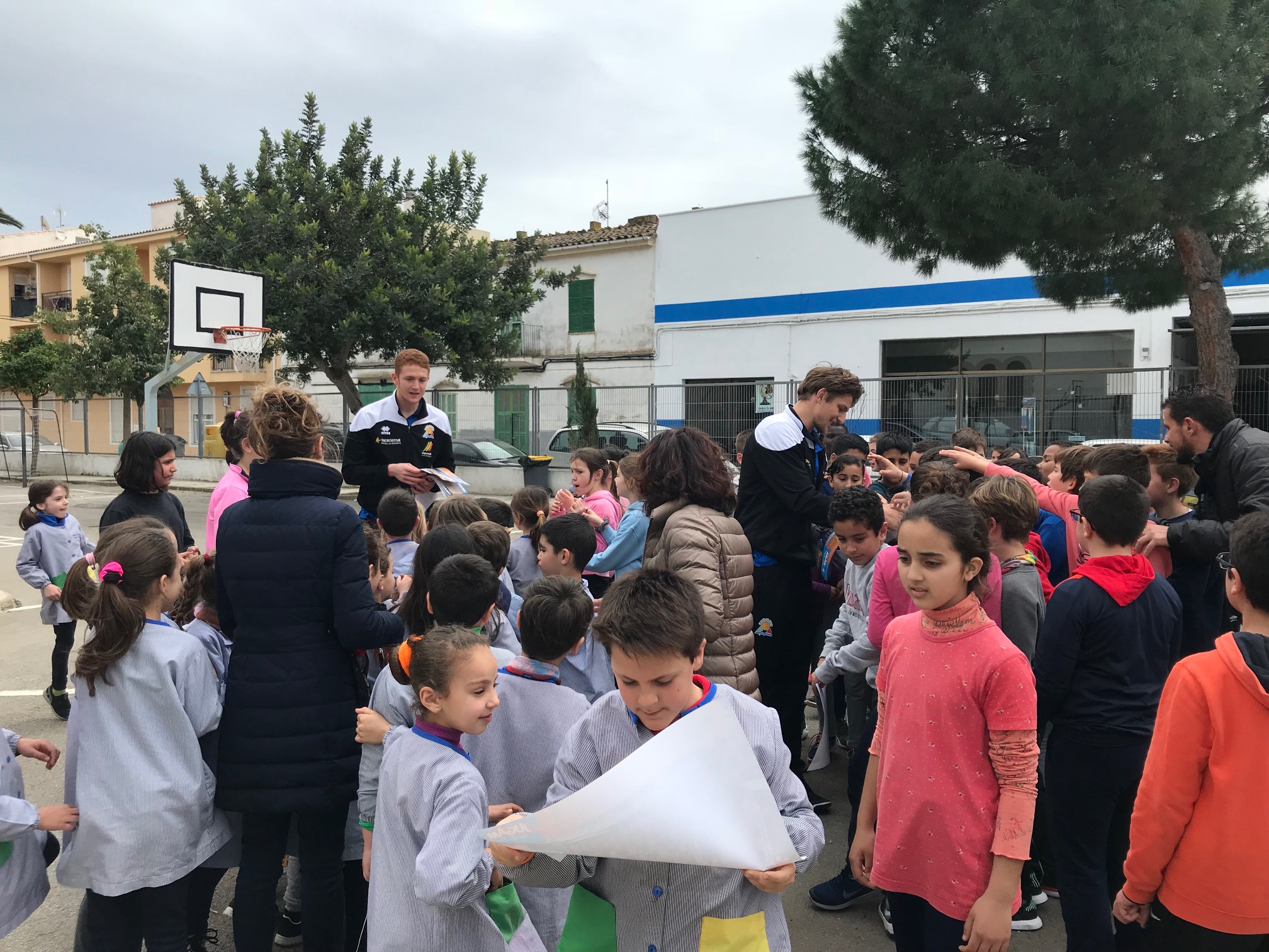 Esta mañana los jugadores del IBEROSTAR Palma, Javi Medori y Moritz Lanegger, han visitado a los alumnos y alumnas del CEIP Vialfàs de Sa Pobla siguiendo con el programa de Esport Base Mallorca JUGAM AMB L'Èlit con el que también colabora con nosotros El Corte Inglés.