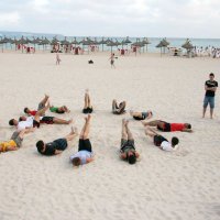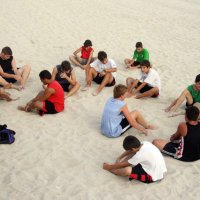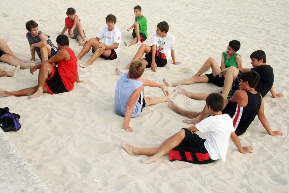 27/08/10 - Con más ilusión que fuerzas, nuestro equipo Cadete preferente de s'Arenal (habrá otro en Palma) inició los entrenamientos de la mano de su entrenador Carlos San Emeterio, sobre la arena de la Playa de Palma.