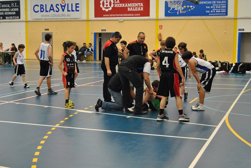 Empezamos la segunda parte y el partido seguía en un toma y daca constante, pero el domingo no estábamos acertados en el tiro, y canastas que otros días convertíamos fácilmente, hoy no entraban. Además, otra vez un poco de mala suerte en forma de lesión, otra vez torcedura de tobillo, esta vez Marc Oliva era el protagonista.