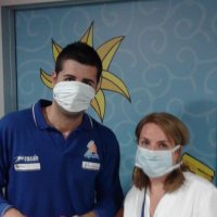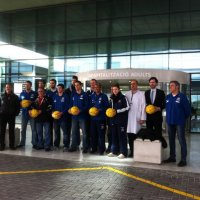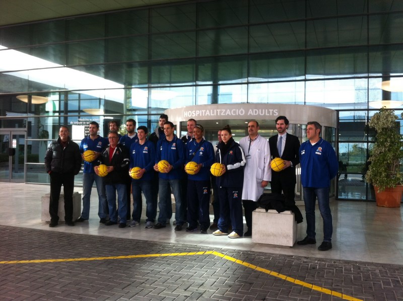 Los miembros de los equipos junto con el entrenador del Palma Air Europa, Maties Cerdà, el director técnico, Xavi Sastre, y los directos Ángel García y Sebastià Matas fueron recibidos por el Gerente del hospital Son Espases, D. Víctor Ribot y por el director del mismo, D. Pedro Vidal.