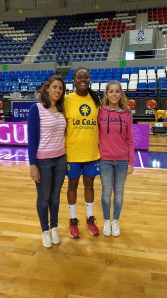 El trío del hotel decidimos ir después de la comida al Pabellón Santiago Martín para presenciar algunos partidos, pero no nos dejaron subir a la guagua oficial. Tuvimos que buscar un taxi y desplazarnos hasta allí. Neus que había pasado la mañana durmiendo, no paró y en el trayecto del taxi siguió dando cabezazos de mi hombro al de Marta, que marmota. Vimos un par de partidos y esperamos la llegada de toda la expedición que vendrían a las 19:00 para ver al Canarias de Iris Junio frente a nuestras amigas del Claret.