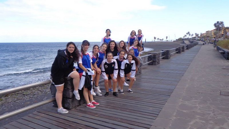 El hall del hotel estaba lleno de grupos de chicas ataviadas con los colores de sus respectivos clubes. No nos habíamos confundido, era allí. Los que si se habían confundido eran los del hotel. Nada que ver nuestra petición de habitaciones con la distribución que ellos tenían hecha. Ahora todas eran dobles, que problema, ¿Dónde metíamos a las familias que iban en triples o pero aún a los padres que iban sueltos (crear parejas podía acarrear problemas matrimoniales al llegar a Palma. Tras varios minutos de discusión, tras varias llamadas, conseguimos que nos diesen algunas habitaciones individuales (no se preocupen los maridos o esposas que quedaron en Palma) y el resto dobles, hasta el día siguiente que nos pondrían algunas triples. Eso sí, la distribución fue por todo el hotel. Los padres ni se contaros, pero el equipo quedó todo en la planta primera con Merion y Lucía, mientras la habitación de Viki y Lourd, más la mía fue llevada al destierro, o mejor casi a la luna, en la planta nueve. Cuando llegué a la habitación comprobé que me habían colocado justo en la esquina y en el último piso. Salí a la terraza y aquello no era viento, era un huracán recién llegado del Teide que me visitaba para darme la bienvenida. Cuan Indiana Jones até la cuerda fuerte a la pata de la cama para poder moverme sin riesgo de que fuese absorbido por aquella ventolera. Y es que ya habían sido bastantes horas de vuelo y no quería tener ninguna más.